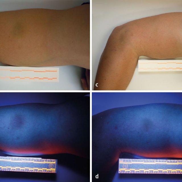 Bruises: Bruises don’t glow but you can see the demarcation of the bruise and often get a better idea of the shape and size under the lamp if needed. Honestly, I would be unlikely to be examining a bruise that closely in a school health room setting. If anything, I would be using this knowledge to determine something like if it is a bruise or if it is a stain on the skin.